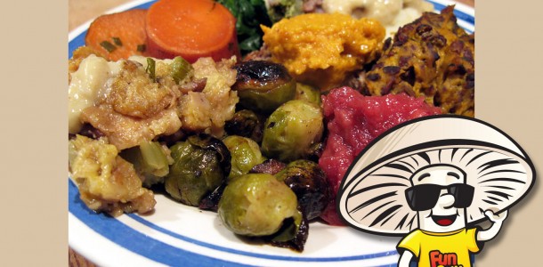 This is a variation of the famous oyster stuffing from the White House. It’s luxurious and delicious, but what really makes it wonderful is the velvety swirl of FunGuy mushrooms the oysters are swimming around in.