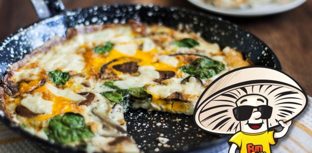 This healthy Florentine frittata does just that! With spinach, cheese and lightly browned FunGuy mushrooms sautéed in just a bit of butter, it’s quick and perfect for breakfast, brunch, lunch, or dinner.