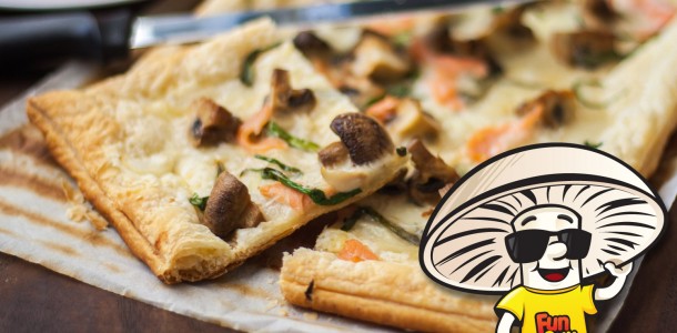 For everyone else it does mean something even better: BRUNCH! You can do almost anything for brunch. That’s the great thing about combining two meals in one. We suggest you go the FunGuy route with this yummy mushroom tart. A flaky puff pastry tart with grilled mushrooms, spring onions, creamy cheese, and a spattering of smoked salmon on top.
