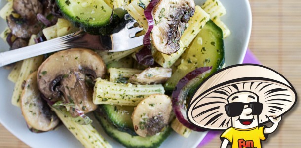 Keep it cool this summer like a FunGuy! We know it’s hard to do with the soaring temperatures, but we’ve got you covered with a cold pasta salad that’s easy to make and tasty too. It’s also great for those day trips to the beach and picnics at the park because it’s dressed with yummy pesto instead of mayo!